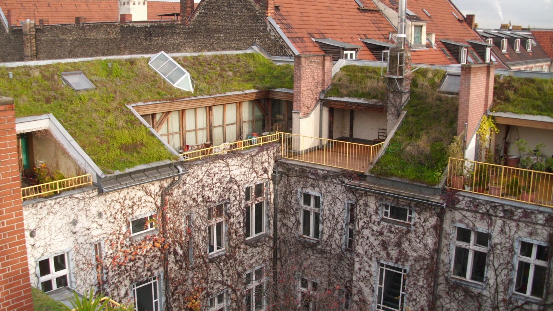 Verbundene Hof-, Fassaden- und Dachbegrünung im Miethausaltbau;